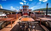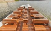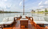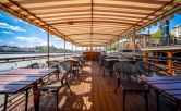 A tágas panoráma fedélzetről páratlan, 360°-os kilátás nyílik a fővárosra. Az egész évben nyitva tartó fedélzeten a hűvösebb napokon pokróc, napsütéses időben pedig napernyő biztosítja a zavartalan kikapcsolódást. Utasterünkben található bár változatos, minőségi italválasztékkel teszi még különlegesebbé a városnézést. Kínálatában megtalálhatóak egyedi koktélok, házi készítésű limonádék, izgalmas hazai borok, kávékülönlegességek, valamint röviditalok. Igazán pihentető élmény érdekében asztalszervizzel várjuk vendégeinket.